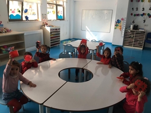 Miniklerimiz ile bugün kırmızı rengi pekiştirdik. Renk okul öncesi çocukların gördükleri şeyleri birbirinden ayırmakta kullandığı yollardan ilkidir. Nesneleri tanımlarken kullandığı ilk kelimeler renkleri ifade eden kelimelerdir. Renk öğretimi burada büyük rol oynamaktadır. 🎈🦋